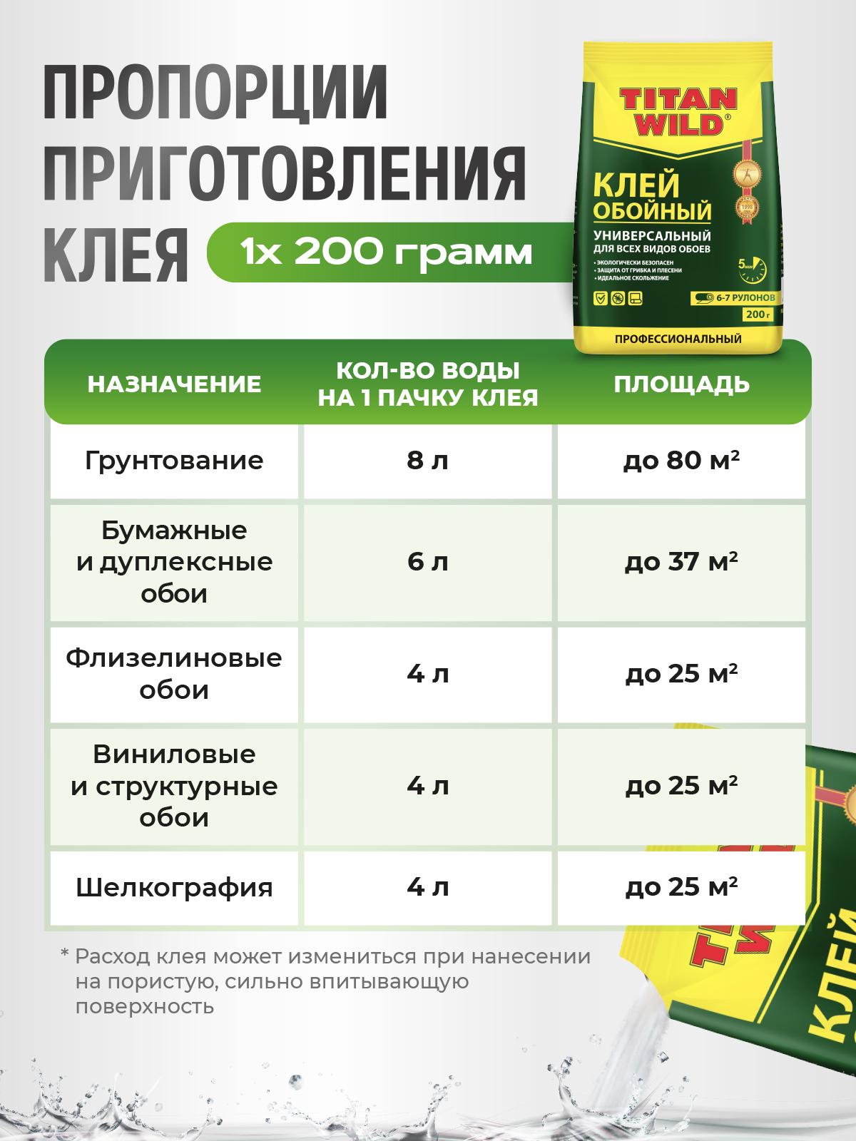 • специальная формула для идеального скольжения: даёт возможность корректировки полотна обоев в процессе наклеивания;